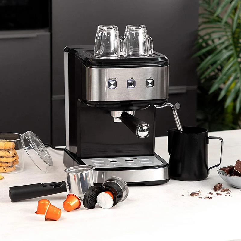 2 façons de préparer des expresso-cette cafetière est compatible avec les capsules nespresso ou le café moulu, avec un portafiltre à double couche et un entonnoir à double portion, qui permet de préparer deux tasses expresso à la fois. Mousseur à lait avec bouton de contrôle de vapeur réglable-le mousseur à lait manuel avec la bonne pression de vapeur peut produire des milliers de petites bulles mélangées à l’air et à la vapeur pour transformer le lait en micro-mousse lisse et soyeuse. En contrôlant l’air et la vapeur dans la quantité la plus appropriée en tournant le bouton de contrôle de la vapeur, vous pouvez obtenir une variété de mousse de lait avec différents degrés de finesse.